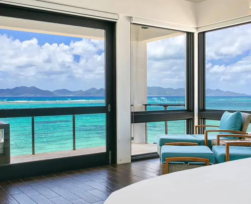 Villa Triton is located in a secluded cove on the south coast of Anguilla in Lockrum. It offers beautiful views of the Caribbean and is situated on a beach with calm waters, perfect for snorkeling due to the presence of a protective reef. This luxury villa in Anguilla blends classic Caribbean architecture with modern amenities and features spacious indoor and outdoor living areas adorned with natural materials. Additionally, there is an adjacent Pelican Villa on the property that you can also consider looking at.